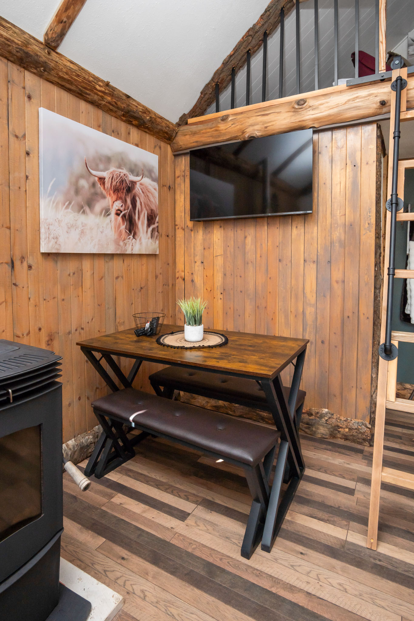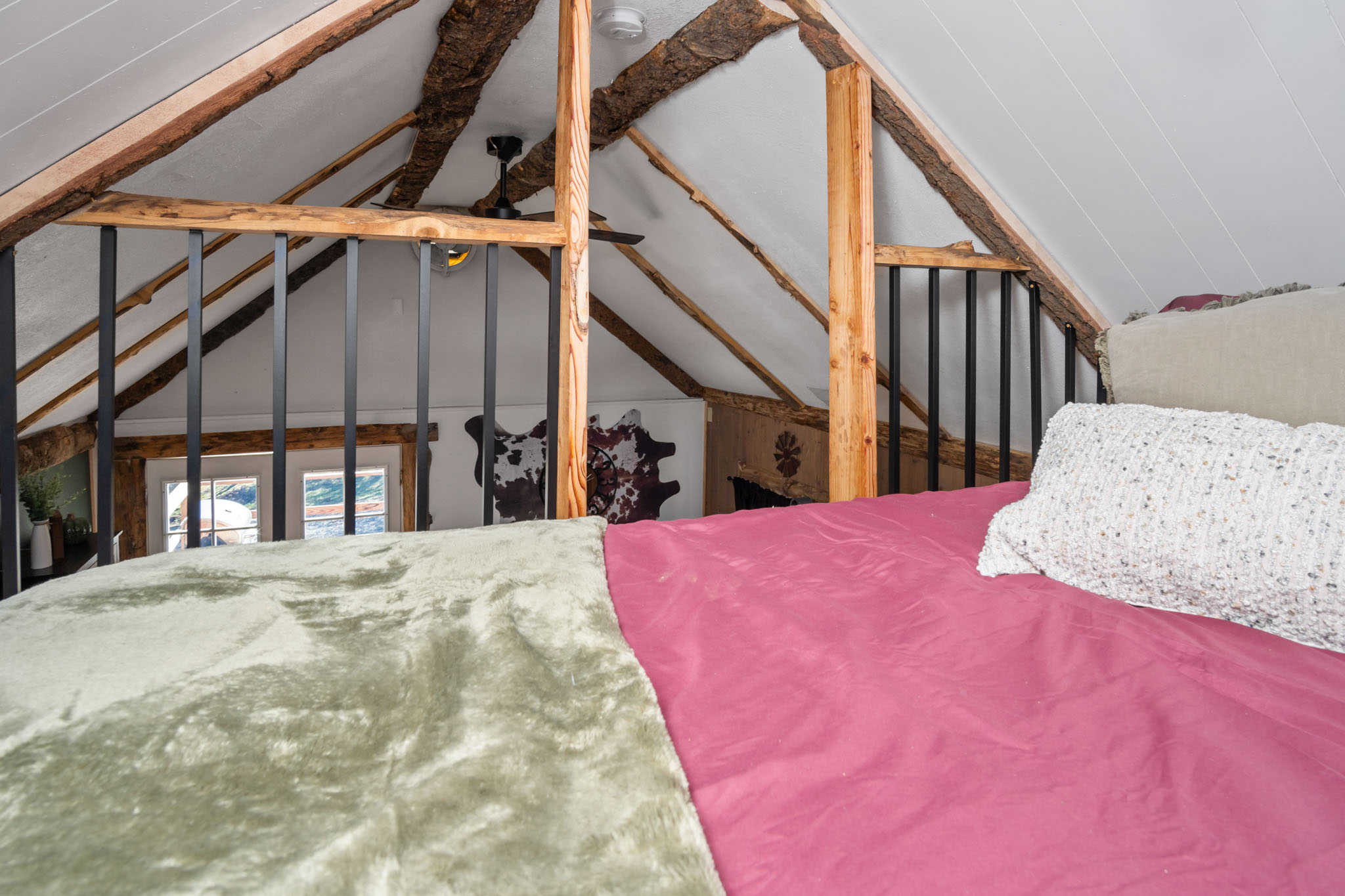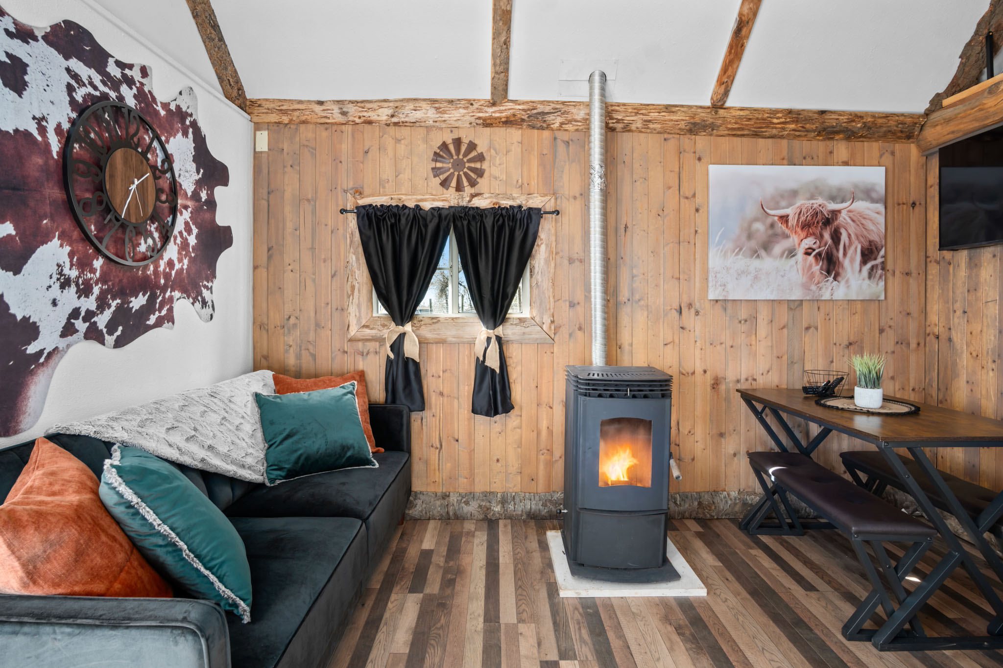 Inspired by Heather's Hayloft vision, the hideaway cabin was lovingly crafted to blend warmth, comfort and timeless charm.